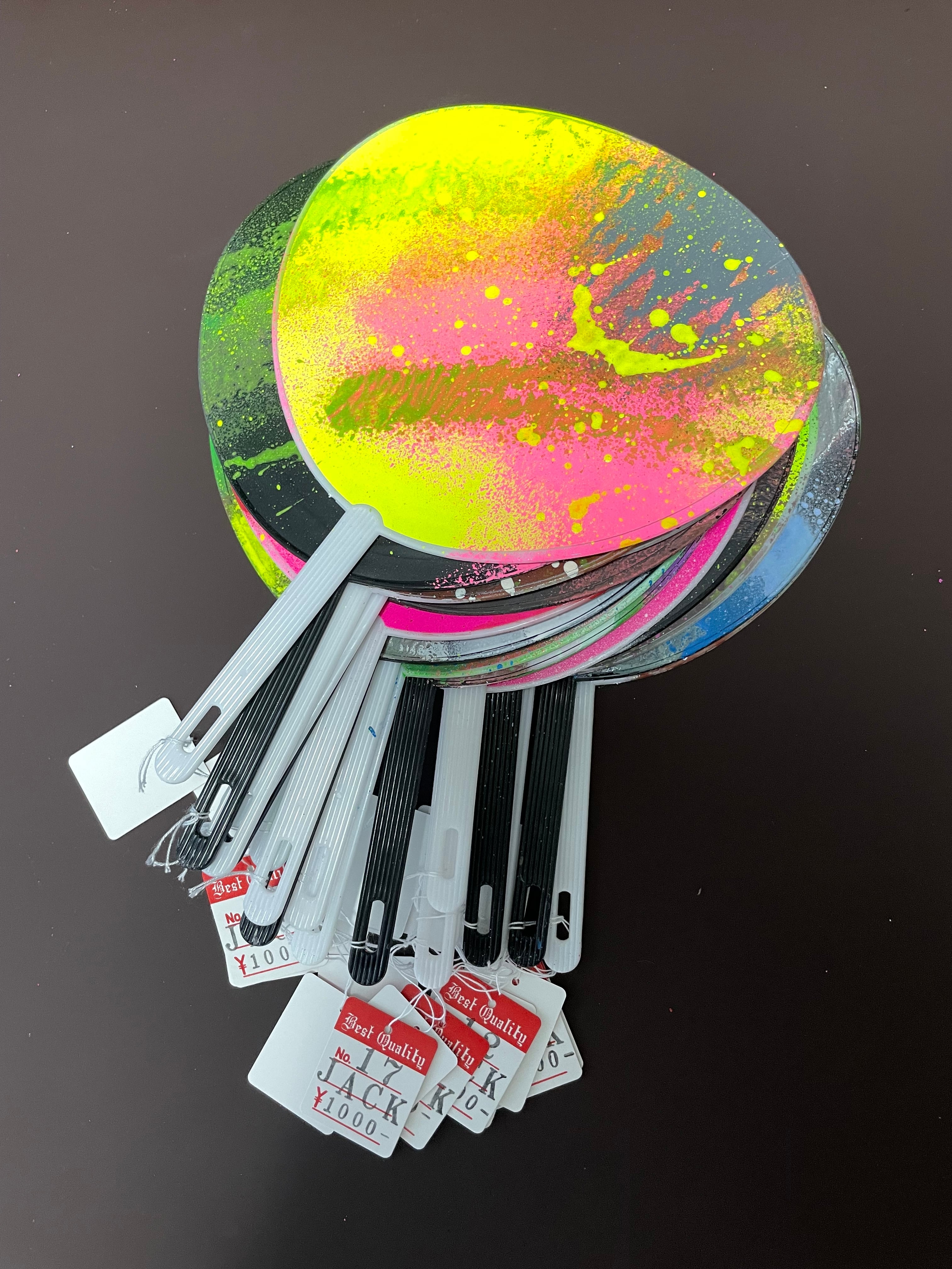 素材:アクリル系塗料 on 団扇(紙、プラ)